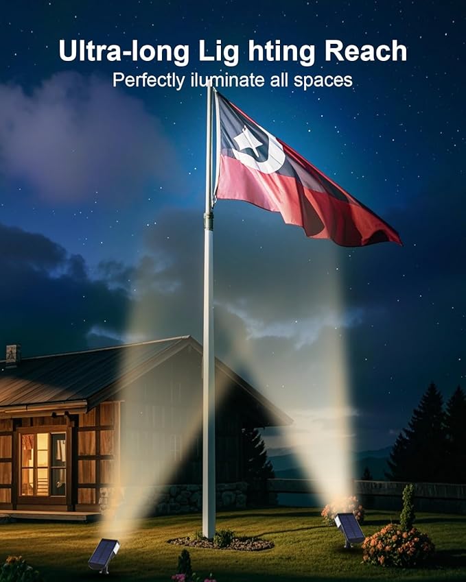 - 💦𝐀𝐝𝐯𝐚𝐧𝐜𝐞𝐝 𝐖𝐚𝐭𝐞𝐫 𝐑𝐞𝐬𝐢𝐬𝐭𝐚𝐧𝐜𝐞, 𝐄𝐧𝐝𝐮𝐫𝐢𝐧𝐠 𝐒𝐭𝐫𝐞𝐧𝐠𝐭𝐡:The solar powered spotlights feature an integrated, exquisite design that outperforms split-type solar lights, especially in harsh weather conditions like storms, showcasing superior waterproof capabilities. Crafted with durable ABS material and equipped with a 2000mAh high-capacity battery, our fixtures provide a long-lasting and reliable lighting experience for your outdoor spaces.