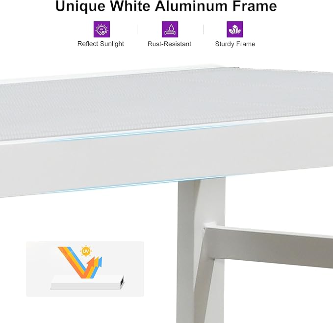 - Rust-Resistant Aluminum Frame: The white-coated aluminum frame reflects sunlight and features a strong, stable, lightweight structure that is not easy to shake.