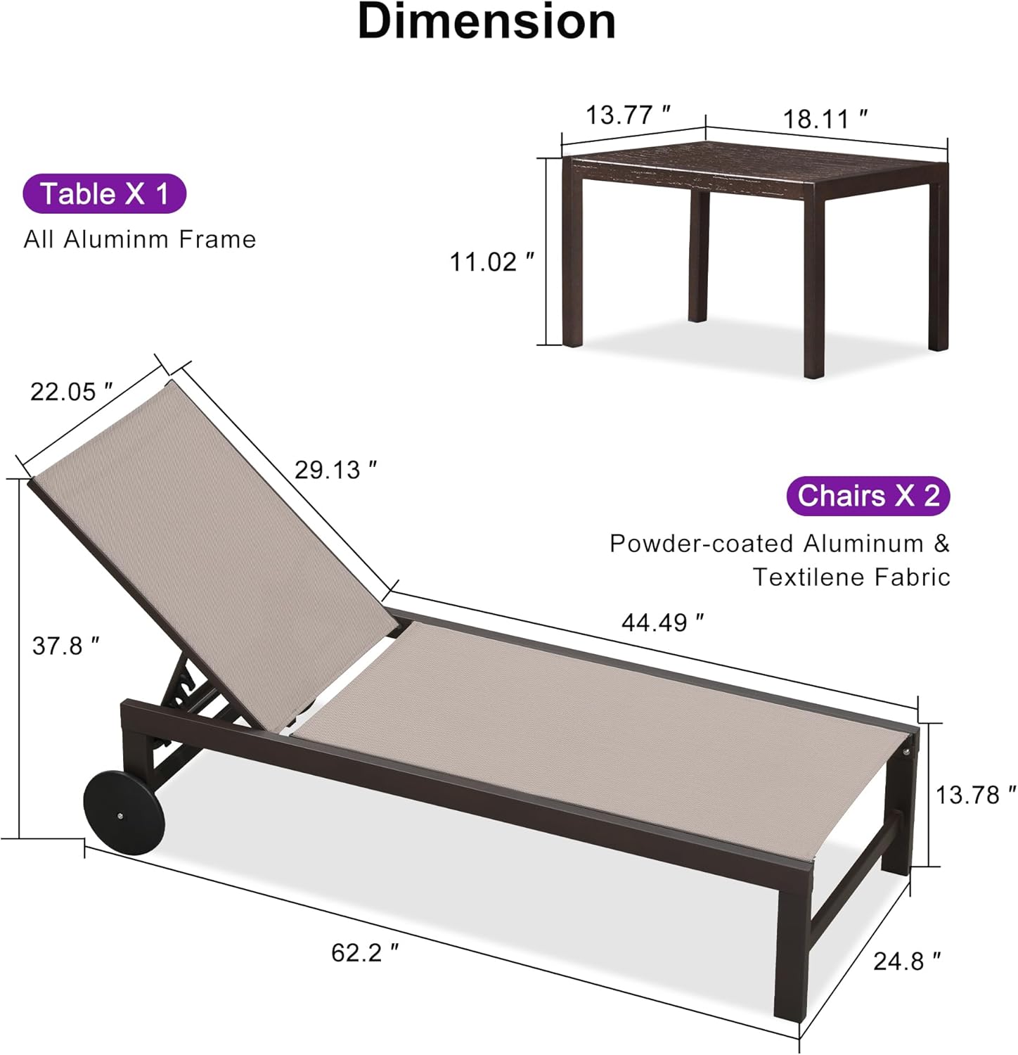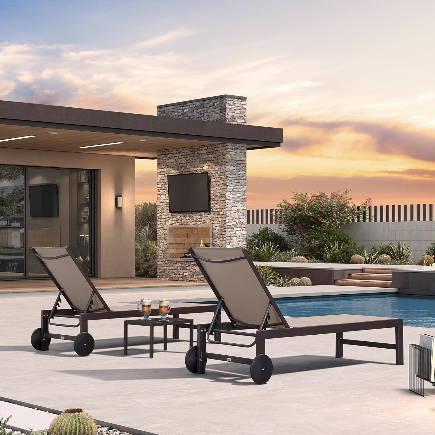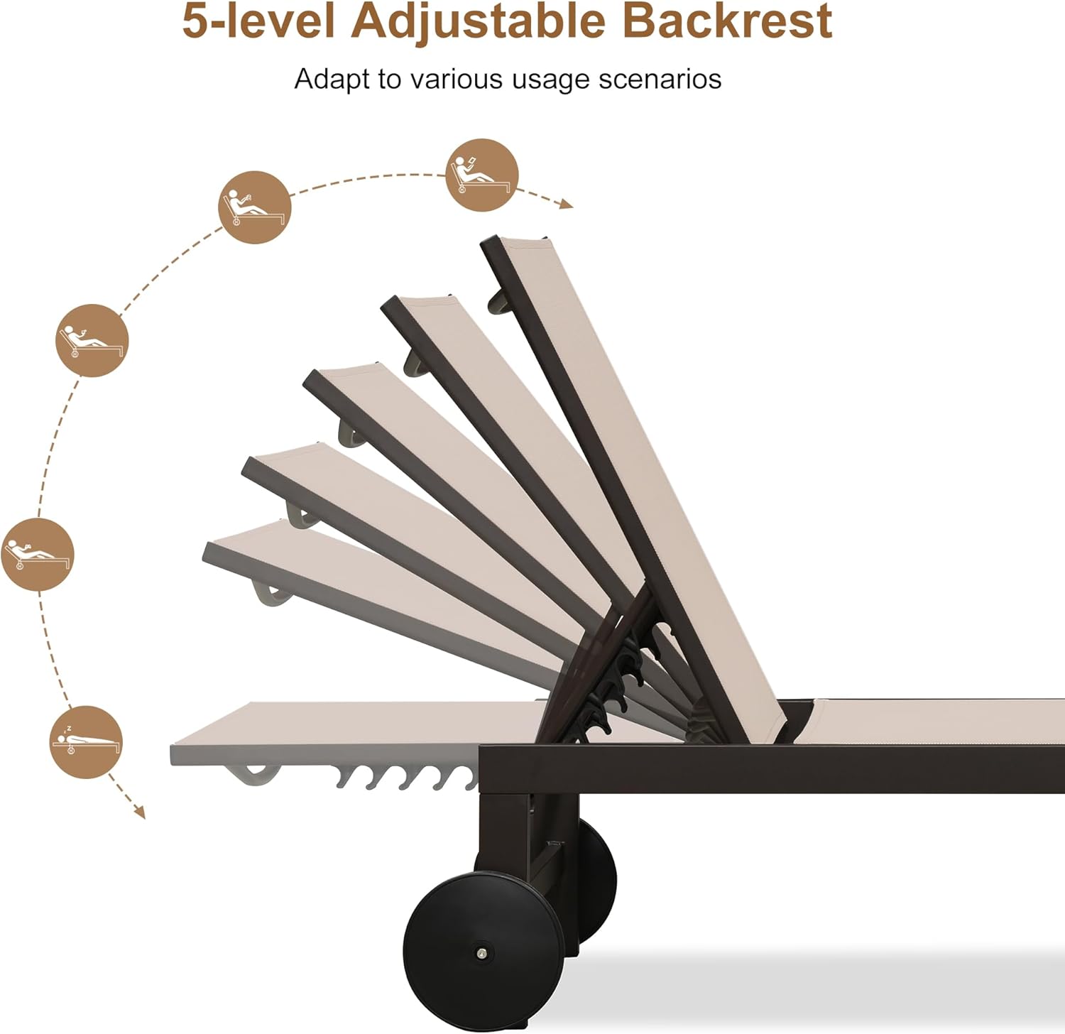 - CONVENIENT MOVING: The patio chaise lounger for outside feature two back wheels, you can move the lounge chairs for outside easily and start sunbathing anytime, anywhere.
