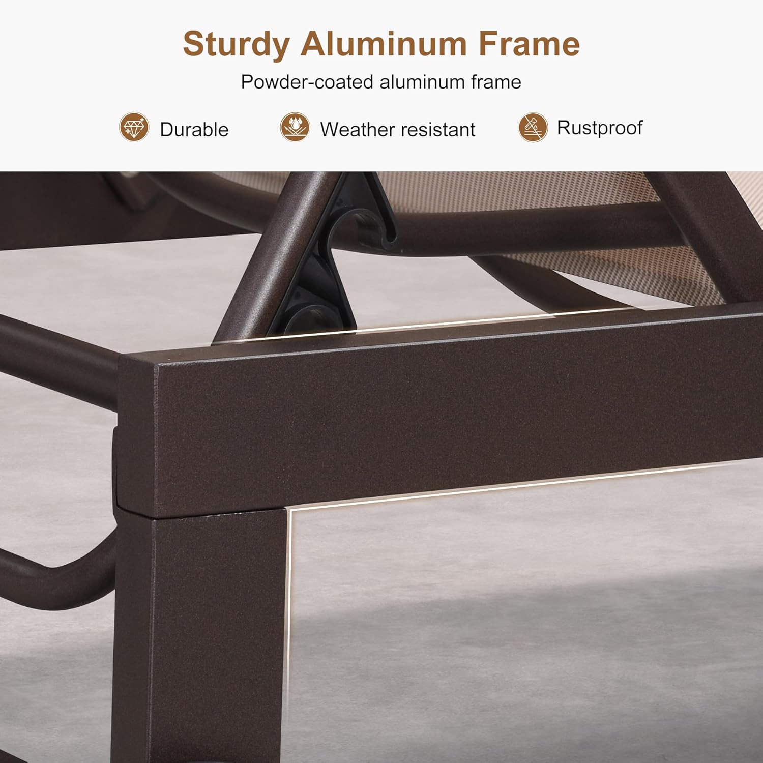 - STURDY FRAME: Rugged powder-coated aluminum frame, pool lounge chair is rust-proof and durable. Besides, the backrest has a triangular structure that can hold up to 330 pounds, providing you with reliable support.