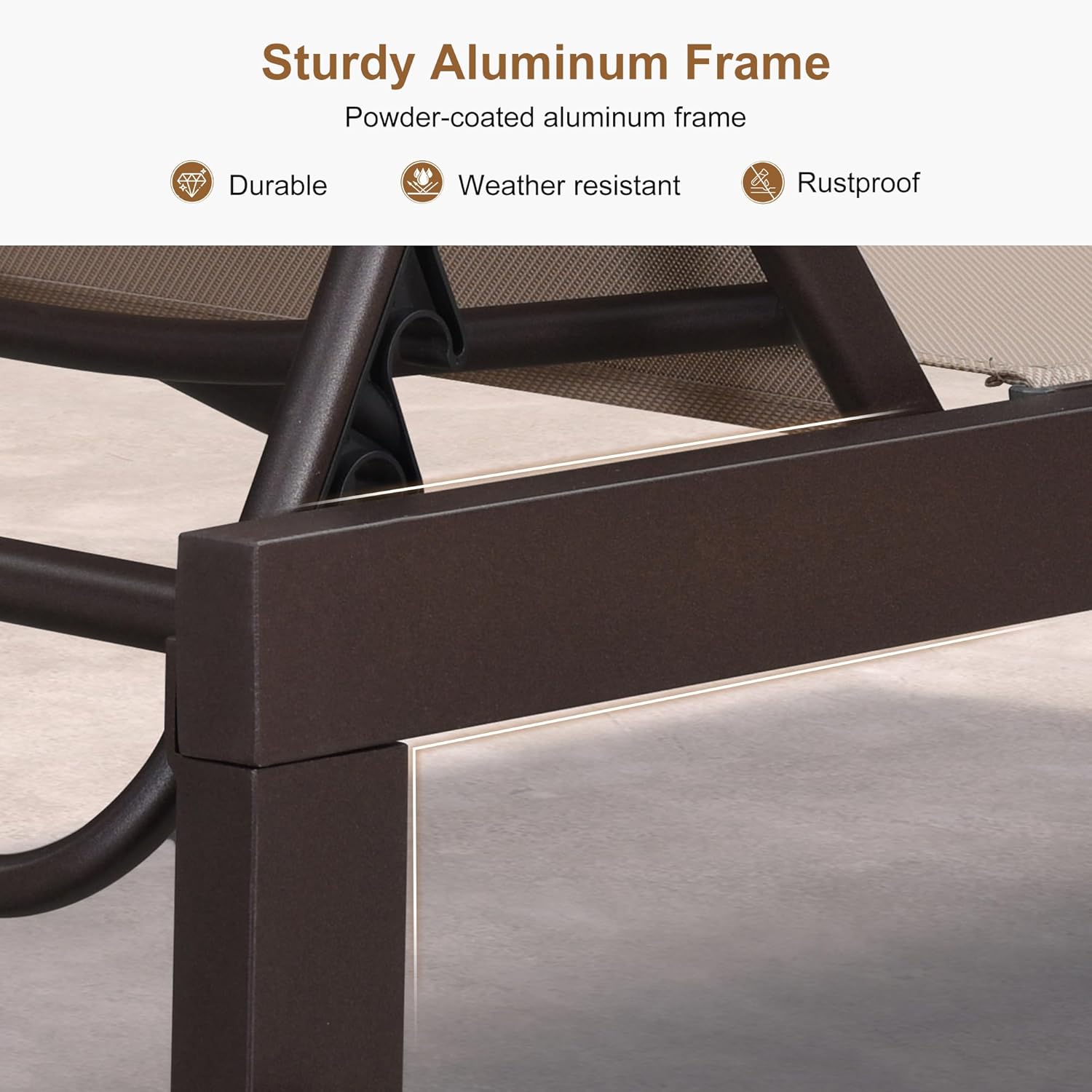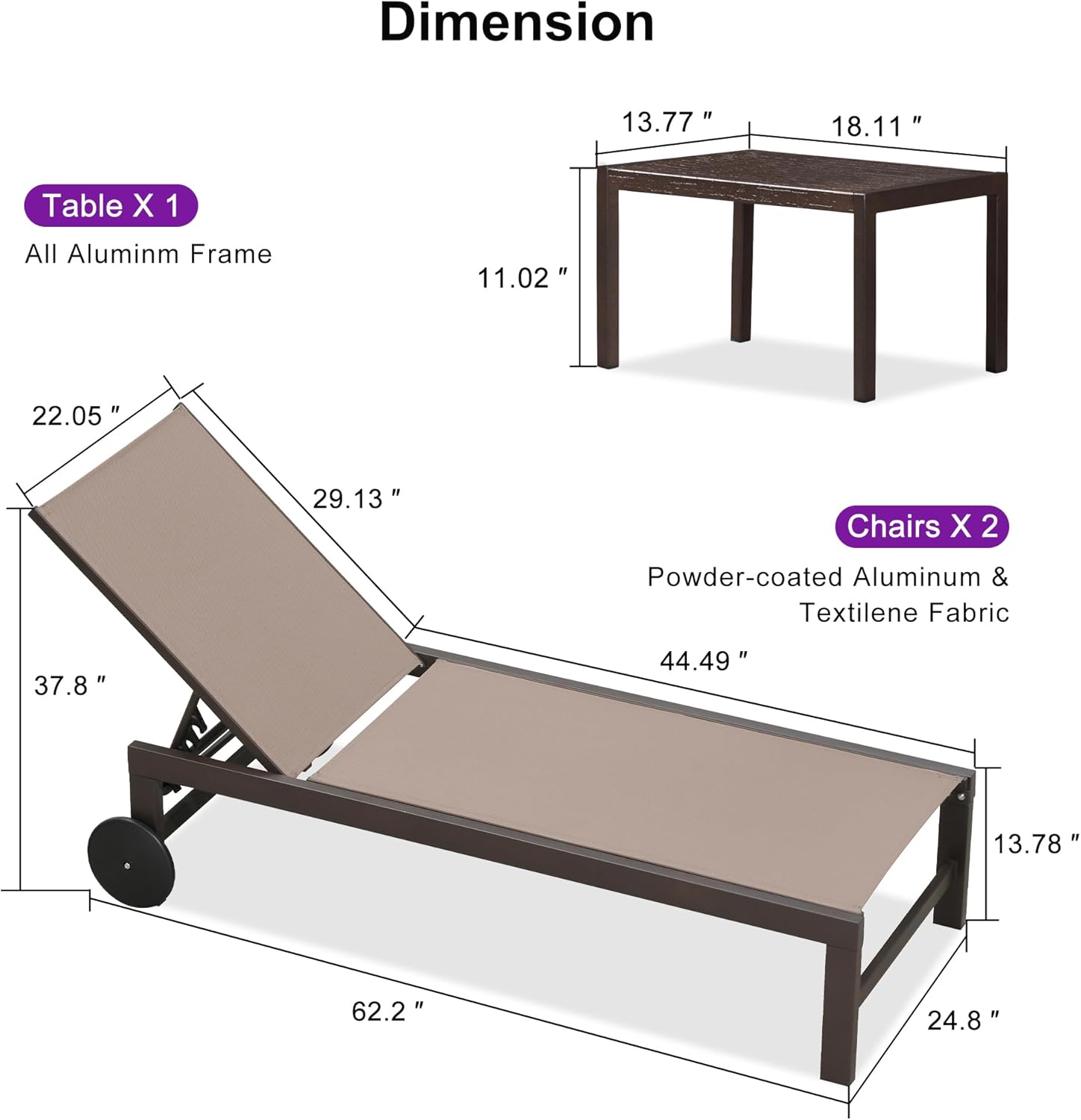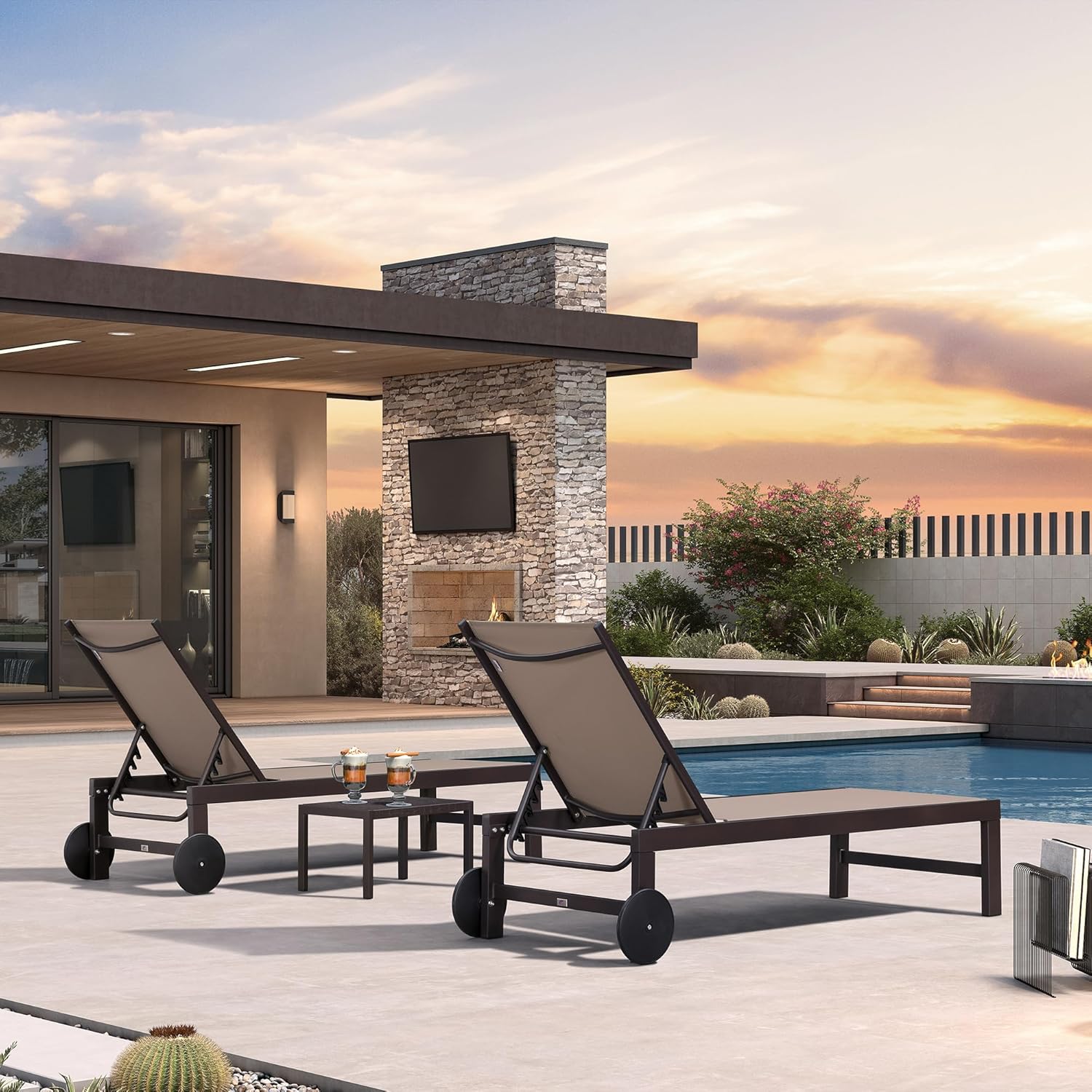 PURPLE LEAF Outdoor Chaise Lounge Chair Set of 3, Pool Lounge Chair for Outside, Aluminum Patio Chaise Lounger with Adjustable Backrest and Wheels for Deck, Outside, Lawn, Garden, Taupe