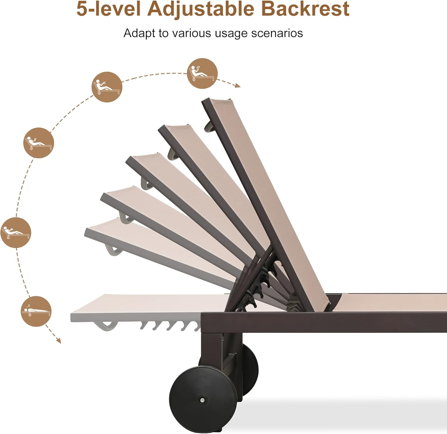 - CONVENIENT MOVING: The patio chaise lounger for outside feature two back wheels, you can move the lounge chairs for outside easily and start sunbathing anytime, anywhere.