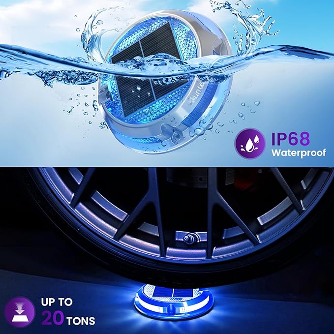 - 【IP68 Waterproof & 20 Tons Pressure Resistance 】With IP68 waterproof and sealed battery compartment design, Quntis solar deck lights for outside can withstand any harsh weather such as heavy rain or high temperatures. The high quality aluminum alloy housing not only effectively prevents these outdoor solar deck lights from rusting, but also has a pressure resistance of up to 20 tons or more, which can withstand the crushing and impact of trucks and cars.