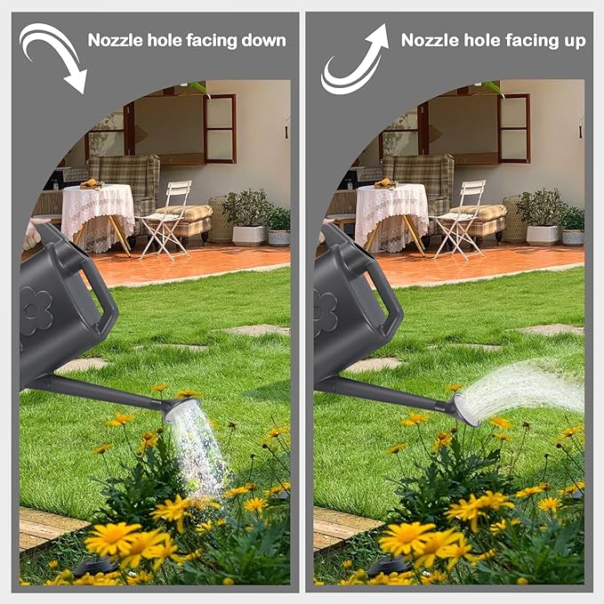 - UPGRADED DETACHABLE CONVERTIBLE NOZZLE: With the help of the watering can's detachable shower nozzle, you can water your hanging or wall-mounted plants with great ease. Indoor and outdoor plants benefit from its multipurpose design's ability to manage water flow more delicately and precisely.