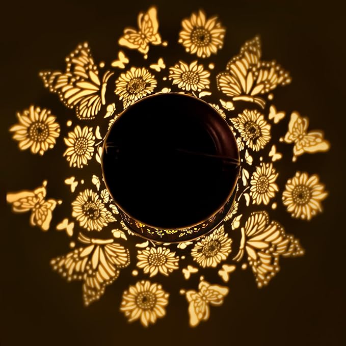 - Stylish Pattern Design: Our outdoor solar lanterns feature stylish and beautiful butterfly and sunflower patterns. Whether you hang the lantern on a tree or place it on a flat surface, it will cast charming patterns around. The unique patterns bring a breath of nature to your outdoor space, making it more inviting and visually appealing.There is the switch ON/OFF on the lantern cover, please make sure to Press the Button before charging.