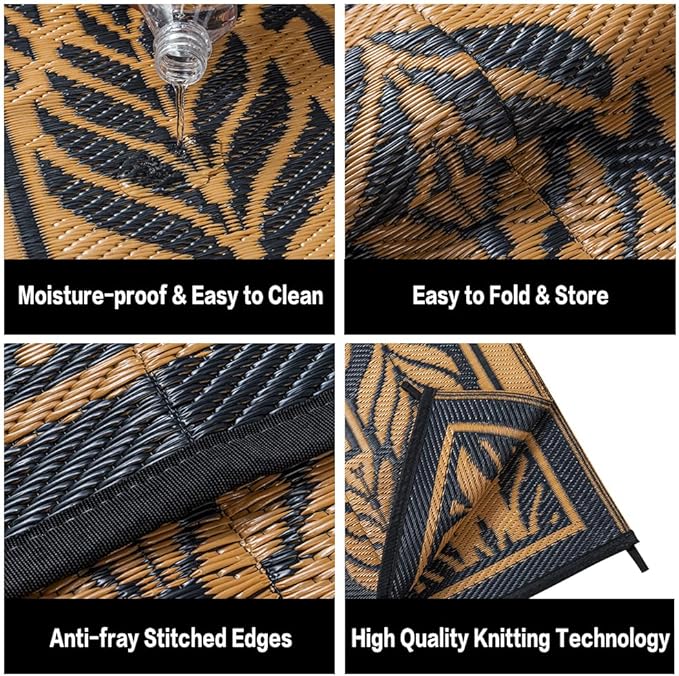 - Easy to Clean and Stain Resistant: The waterproof woven rug is quick dry and easy clean. When your pet steps with the dirt and enters the house, or when you lay out the shoes you walked outside at the door of your RV, just quickly sweep away dirt with a hose or wipe with wet cloth, then let them dry in the sun.