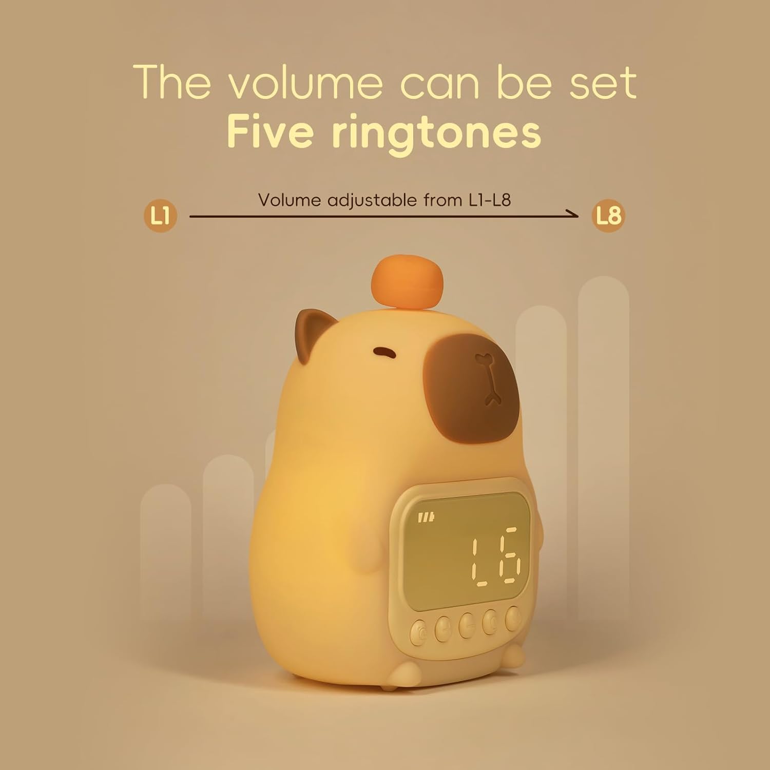 Capybara Alarm Clock with Night Light for Kids, Cute Toddler Alarm Clocks for Bedrooms Ok to Wake Clocks for Girls and Boys, Silicone Animal Tabletop Lamp for Kid, RGB Color