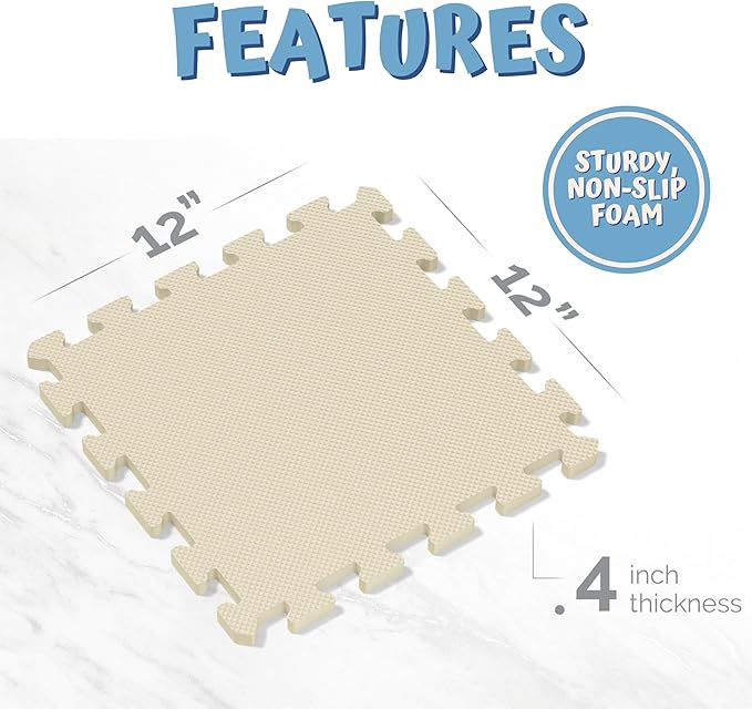 TOYVELT Foam Puzzle Floor Mat for Kids 12x12-32 Interlocking Play Mat Tiles with Colors - Educational Large Puzzle Foam Floor Tiles for Crawling, Non-Toxic - Cream-Gray-Beige