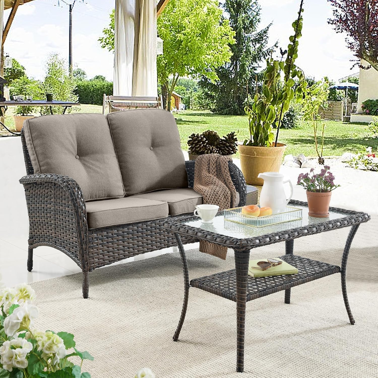 - 4.Beautiful And Durable: Relax in the beautiful outdoors with this perfect furniture set. Our patio wicker swivel chair and loveseat set with high quality foam cushion, comfortable and soft rebound good. The cushion cover is made of olefin outdoor water-resistant fabric. The seat and backrest are made of beautifully woven wicker coupled with ergonomic design, making it a classic upgrade for any porch or patio.