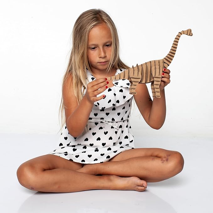 Cottify Dinosaur 3D Cardboard Puzzle - Fun 3D Puzzles for Adults & Kids, Easy to Assemble 3D Puzzle, Eco-Friendly, No Scissors or Glue Needed, Perfect Sustainable Gift (Brachiosaurus)