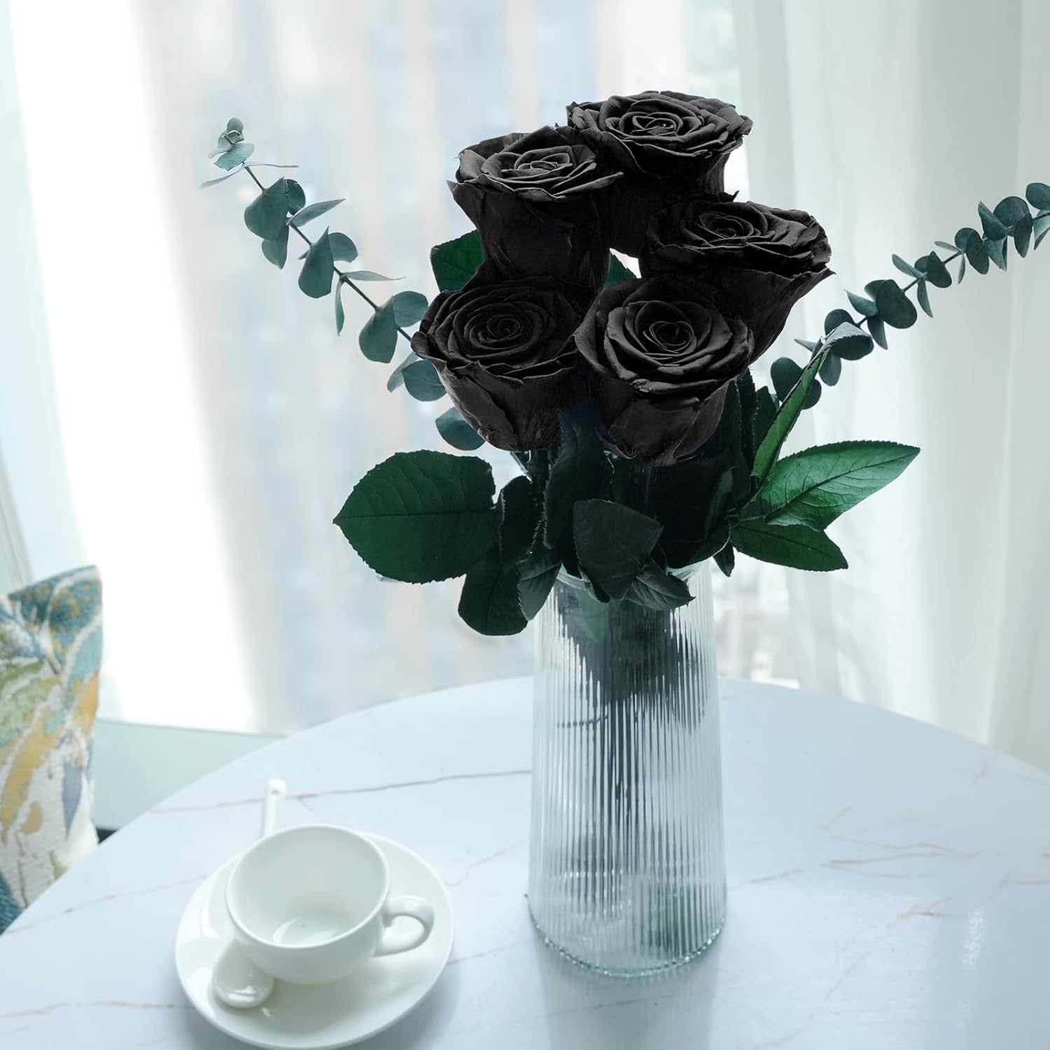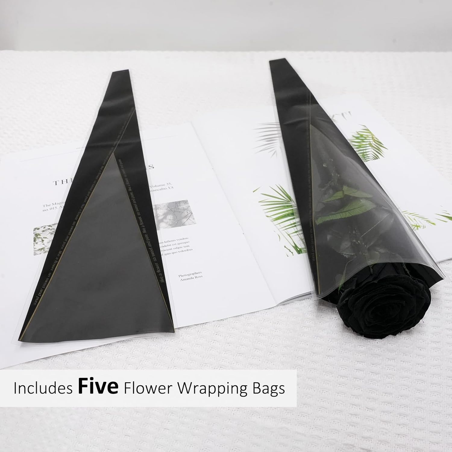 - Eternal Real Rose with Stems: Package includes- 5 x Preserved flowers roses, 5 x Flower wrapping bags, 1 x Greetings Cards,1 x Rose gift box. The preserved flowers rose with long stems are 30 to 32 cm(11.81 to 12.6 in) length, the roses have a diameter of 5 to 6 cm(1.97 to 2.36 in) and some of their thorns have been removed to avoid injury. Preserved flowers roses for delivery prime