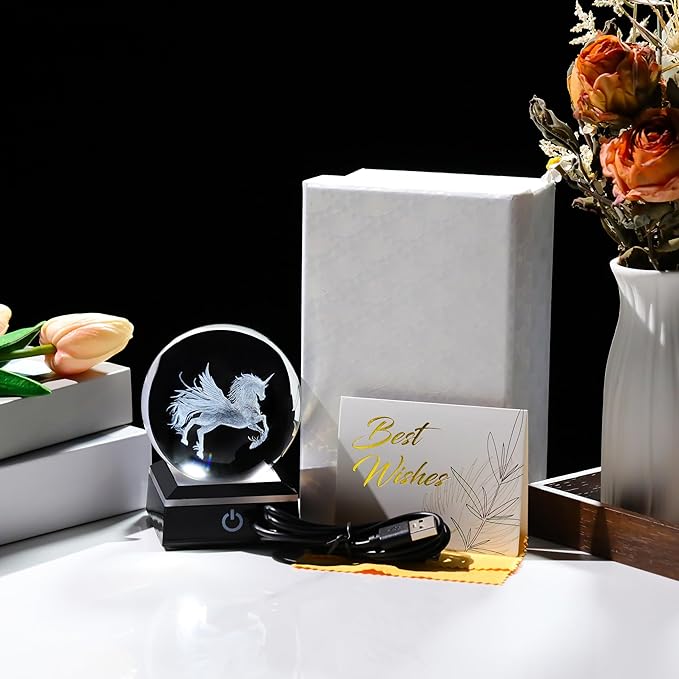 Qianwei Unicorn Gifts for Women 3D Crystal Ball 3.14'' - 80mm Laser Unicorn Decor Glass Animals Unicorn Gifts Figurines Statue Stuff for Room Decorations Unicorn Night Light