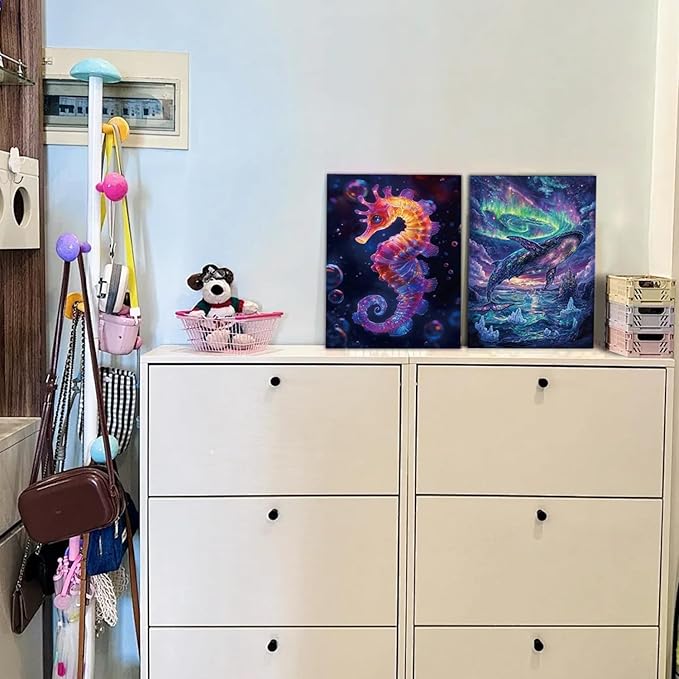 Georgie Porgy Scratch Paper Art Set for Kids Adults Magic Rainbow Scratchboards for DIY Arts and Crafts Kits Christmas Birthday Gift with Scratching Tools Kit (A4-Noctilucent Whale + Sea World)