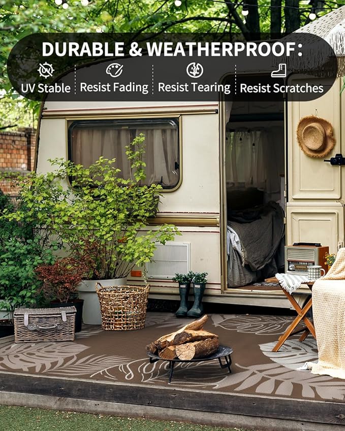 - RV traval&Camping: This camper must haves outdoor rug is ideal for picnics, gatherings, and RV trips! The lightweight outdoor camping carpet with foldable lines is easy to carry and saves space. Includes an extra carry bag and rug stakes for 6x9 ft, 8x10 ft and 9x12 ft. Grass-friendly, durable, and easy to clean, this outdoor rug enhances outdoor adventures.