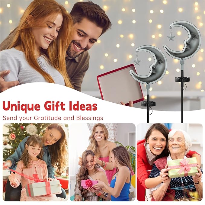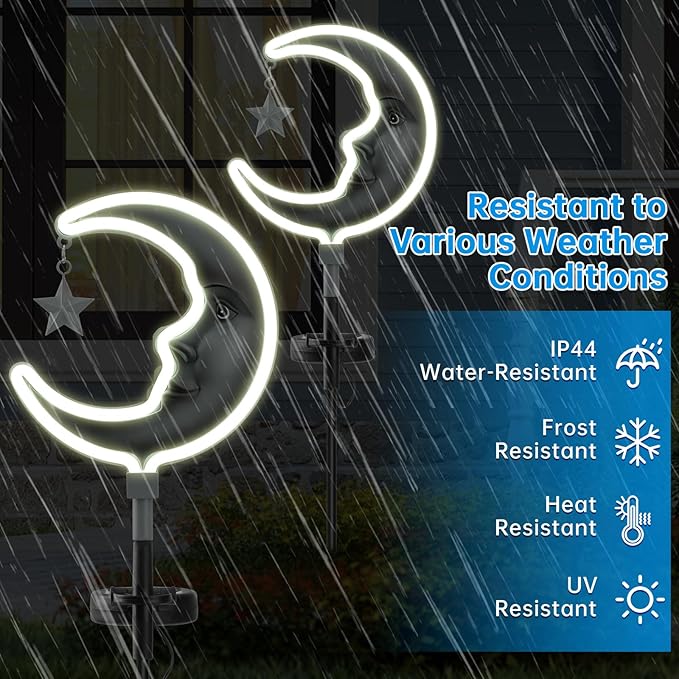 Solar Outdoor Garden Lights - Outdoor Decor Butterfly Neon Lamp Patio Path Decor(2 Pack) (Silver Moon)