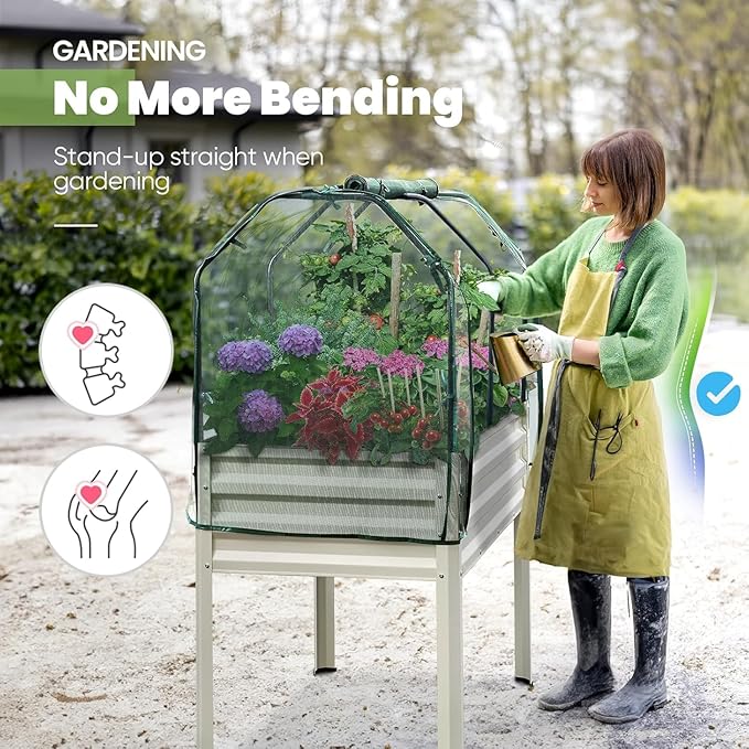 - 【Height: 30", Ergonomic Design】The galvanized raised garden bed stands at a comfortable height of 30 inches, eliminating the need to bend or kneel and sparing your back and knees from strain. It makes a perfect gift for relatives, friends, and anyone passionate about gardening.
