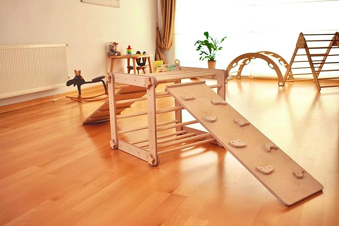 - Montessori-Inspired Climbing Set – Designed to promote physical development, balance, and coordination, this climbing cube and triangle encourage independent play and motor skill growth in toddlers.