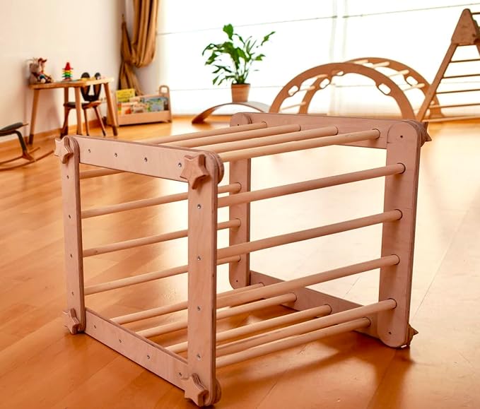 - Montessori-Inspired Climbing Set – Designed to promote physical development, balance, and coordination, this climbing cube and triangle encourage independent play and motor skill growth in toddlers.