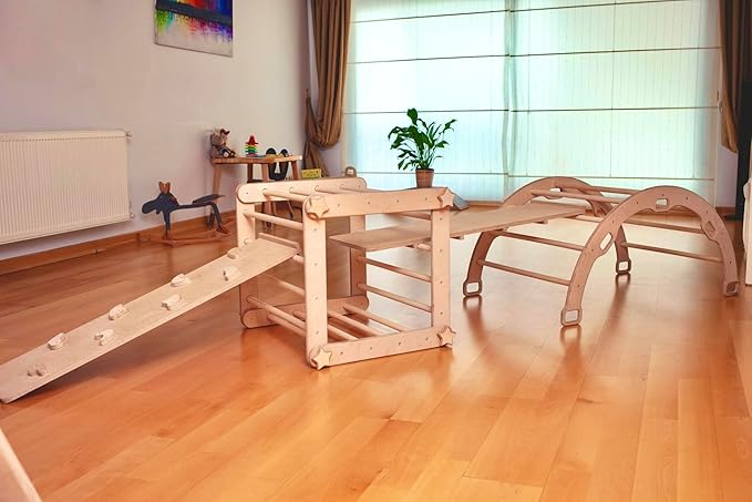 - Montessori-Inspired Climbing Set – Designed to promote physical development, balance, and coordination, this climbing cube and triangle encourage independent play and motor skill growth in toddlers.