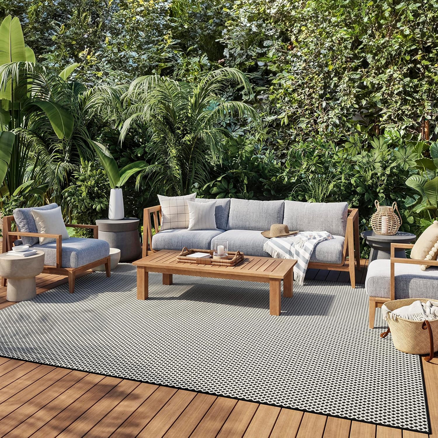Nourison Home Courtyard Black White 8' x 10' Area Rug - Easy Clean, Non Shedding, Bed Room, Living Room, Dining Room, Kitchen (8' x 10')