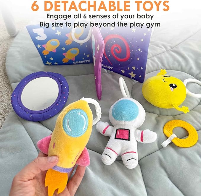 QUOKKA Baby Play Gym XL – Rocket-Shaped Baby Play Mat with 6 Large Sensory Toys – Tummy Time Mat for Infant Development – Machine Washable Newborn Essentials Must Haves – Gender Neutral Gift Items