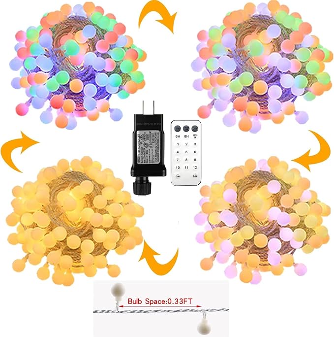 Globe String Lights 115 Feet 200 LED,Plug in Fairy String Lights with Remote Timer Extendable, 11 Modes Indoor Outdoor Color Changing Lights for Wedding Bedroom Classroom Patio Garden