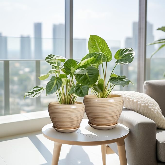 - Different Sizes: The large planter pot (10" D X 7" H), medium planter (8" D X 6" H), and small plant pot (6" D X 4.5" H). This planters set fits olive tree, snake, bonsai, money tree, monstera, alocasia, pachira aquatica, ficus lyrata, palms, and more