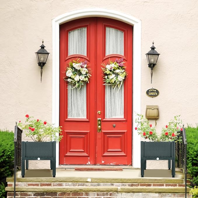 - Durable Construction: Made of reinforced PP in rattan pattern, each planter box sizes 15.7"L x 15.7"W x 16.5"H with leg. 31"L overall. Lightweight, stylish yet sturdy for long time use