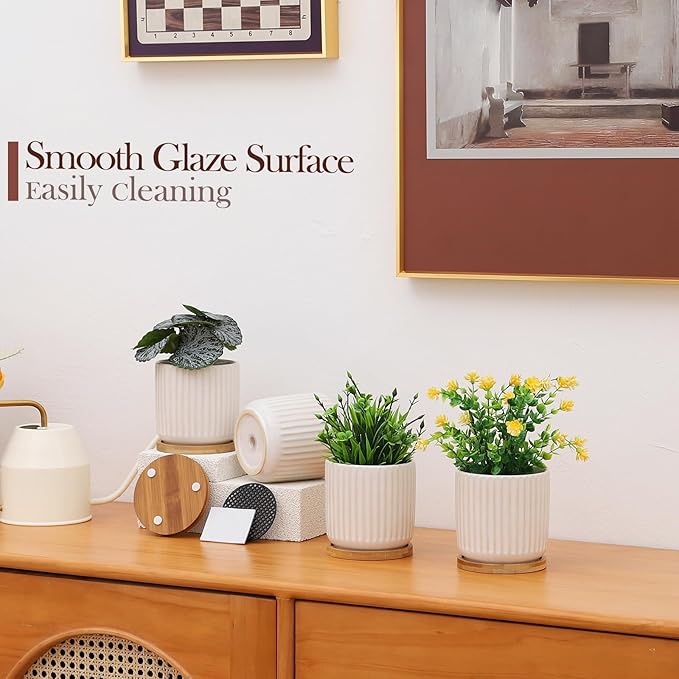 - Simple Modern Style - White ceramic plant pots with stripe, suitable for growing potted plants indoor outdoor, Convenient for viewing at any time, and easy to take care of.