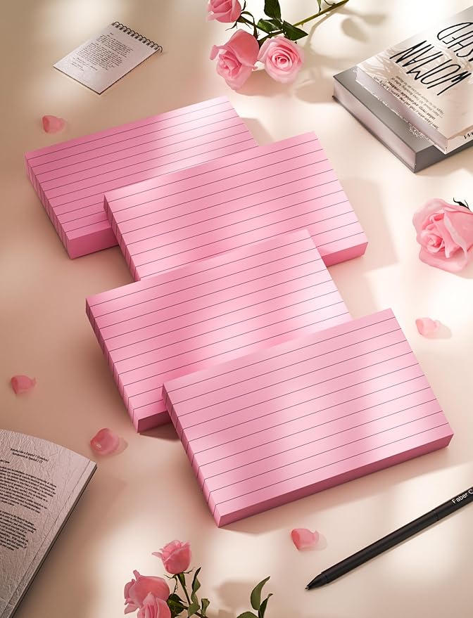 - 【PINK NOTE CARDS】- Each index pads measures 3’’ x 5" and contains 50 sheets per note card, 200 count per package, Quality lined index cards 3x5 is single-side with 9/32" wide lines format provides plenty of space for your notes. Blank on the back enables funny notes/ creative inspiration, These practical lined cards are perfect for studying, writing notes, shopping list, instructions, recipes.