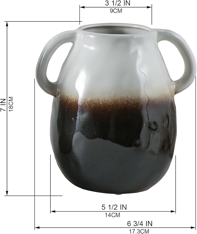 - High-Quality Ceramic - The Tanvecle White Gradient Ceramic Vase is made with high-quality ceramic, offering a sleek finish and long-lasting durability. Size: 6.75"L x 5.5"W x 7"H with a 3.5" opening.