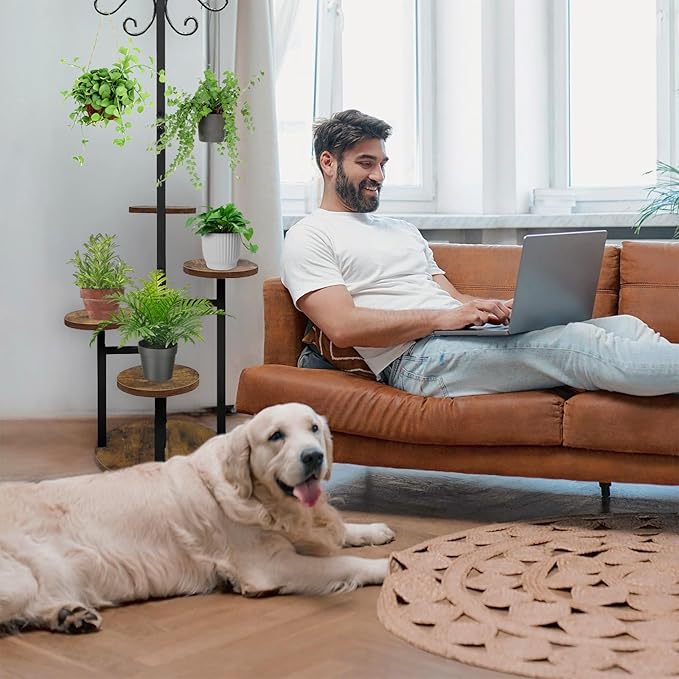 - 【Hanging Plant Stand】With a generous 32 inches of hanging space on the top rod, you'll have ample room to display your favorite plants.(The hanging hook can bear up to 6lb plants. It is not advisable to hang plants that are too heavy, which will cause the hook to tear and affect the use of the plant stand.)