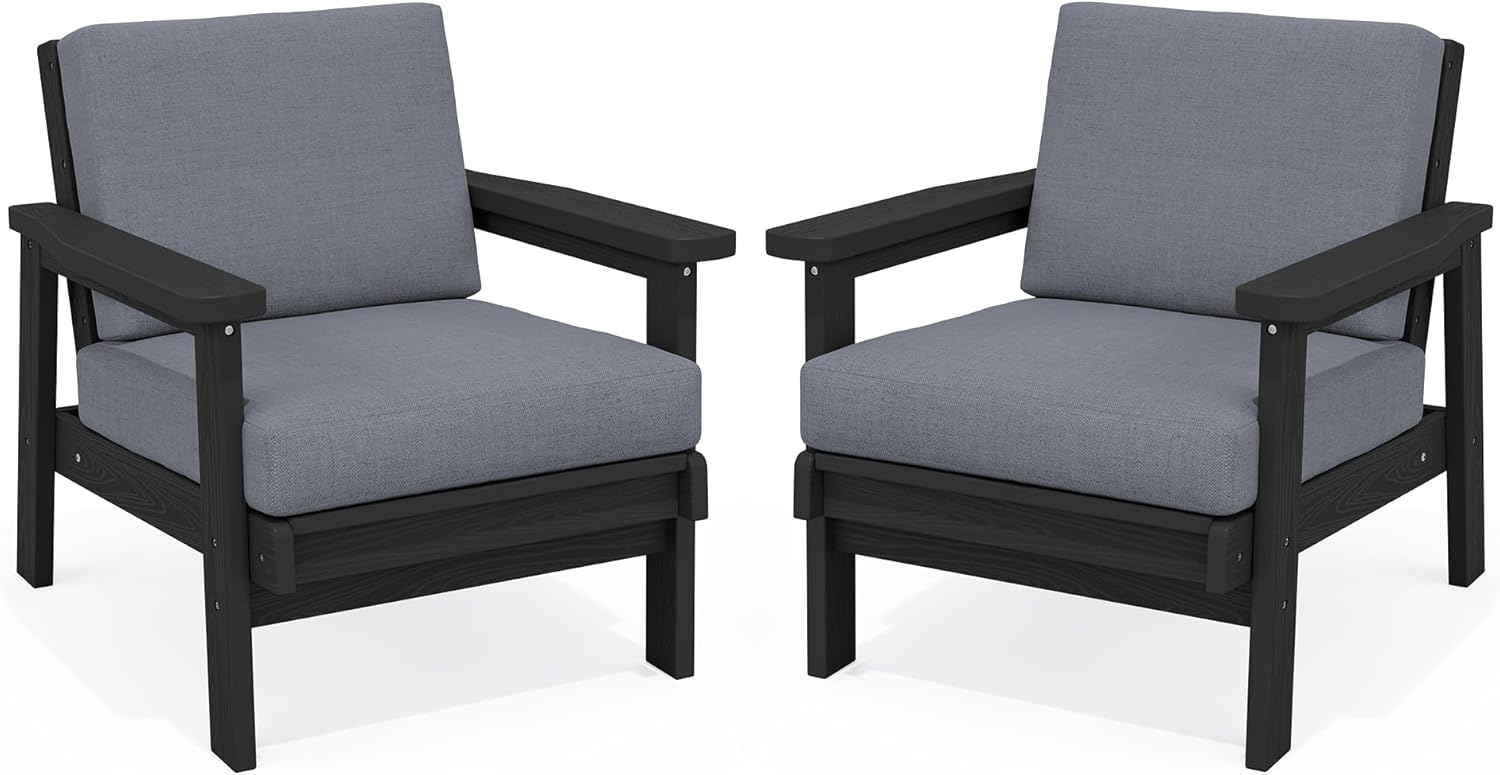 SERWALL HDPE Outdoor Couch Set of 2, Black Frame and Grey Cushion