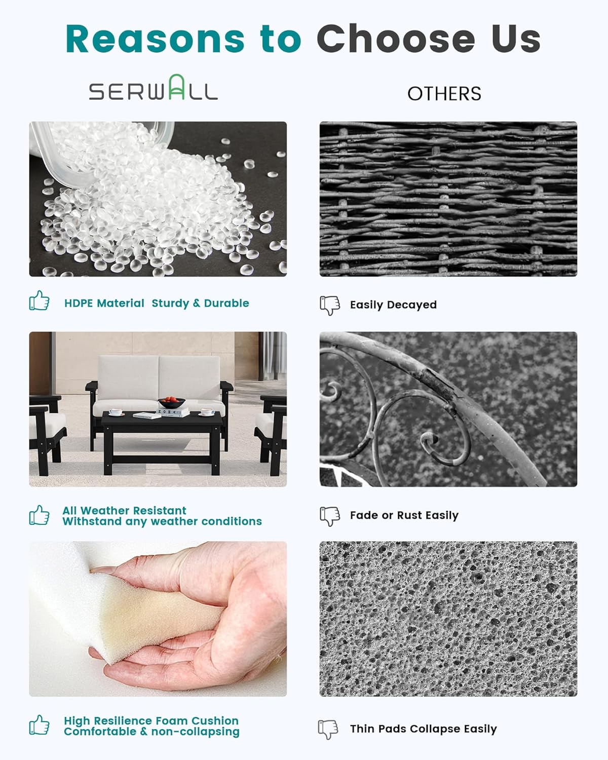 - After-sales Support: We want our customers to be 100% satisfied with serwall outdoor furniture - you can always come to us for any product questions and product care, we are committed to your satisfaction.