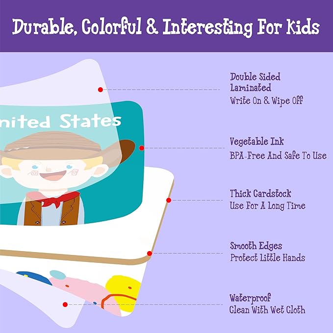 - Safety And High Quality: Made of thickened cardboard for durability, neither bend nor fold. Printed with non-toxic plant ink, which will not release harmful substances. The round and smooth edge is harmless, suitable for small hands. Also, it is easy clean with a damp cloth. Each card measures 2” X 2”.