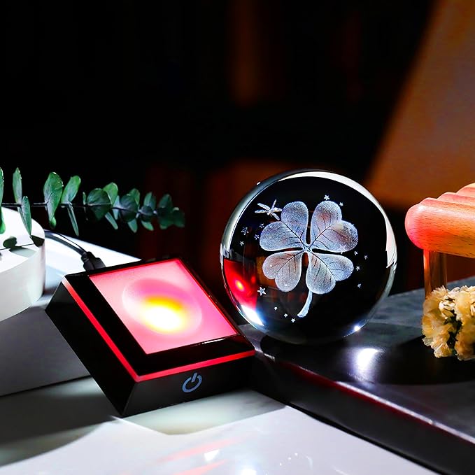 - 🍀Led Colorful Light Base: Six lighting modes: slow flashing multi-coloured; fast flashing multi-coloured; constant white light, red light, blue light and green light. Light the crystal in various colors. Lighting up the night, shine bright like a diamond, choose to be happy.
