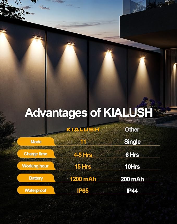 - 【1200mAh Battery & Long Working Time】We equipped the outdoor solar wall lights with a built-in 1200 mAh battery, which supports each outdoor solar light to light up continuously for more than 15 hours, and can guarantee the battery durability to meet the daily use of most families.
