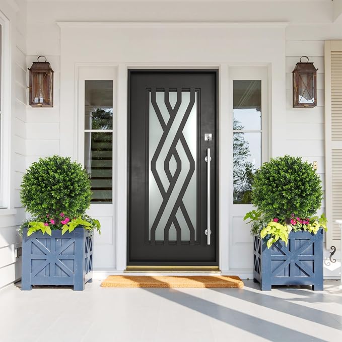 - 【EXCELLENT QUALITY】 The 2 pack of artificial boxwood topiary ball bushes with spikes for outdoor & indoor are made from premium material, designed to be UV resistant, waterproof, and fade proof. Size:22"H x 15"D x 15"W (Including the 4.7 inch height spikes). We have enhanced the density of the leaves making them look more lifelike and lush. The surface of the branches also has features realistic textures