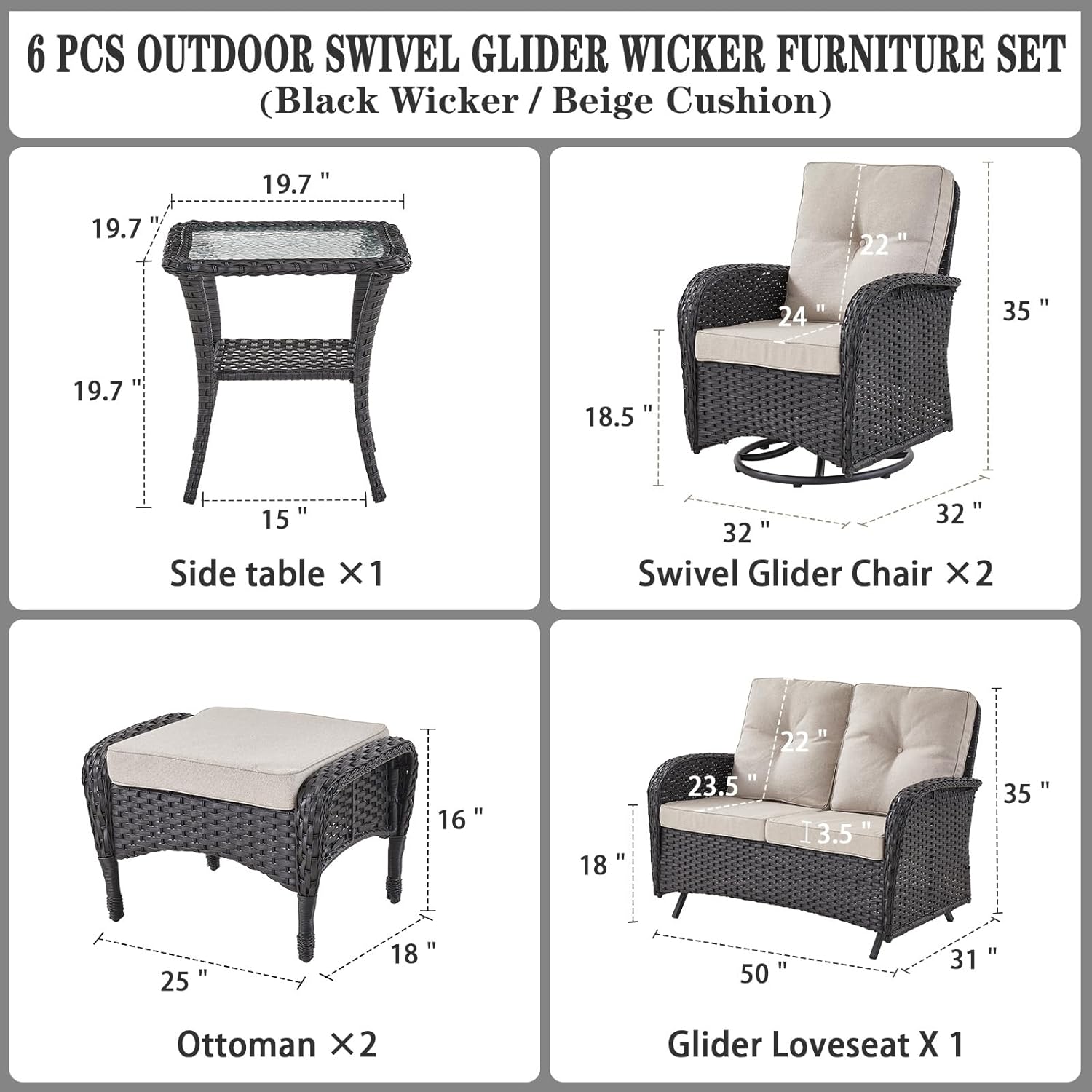 - Size : 6 PCS - Swivel Glider & Glider Loveseat