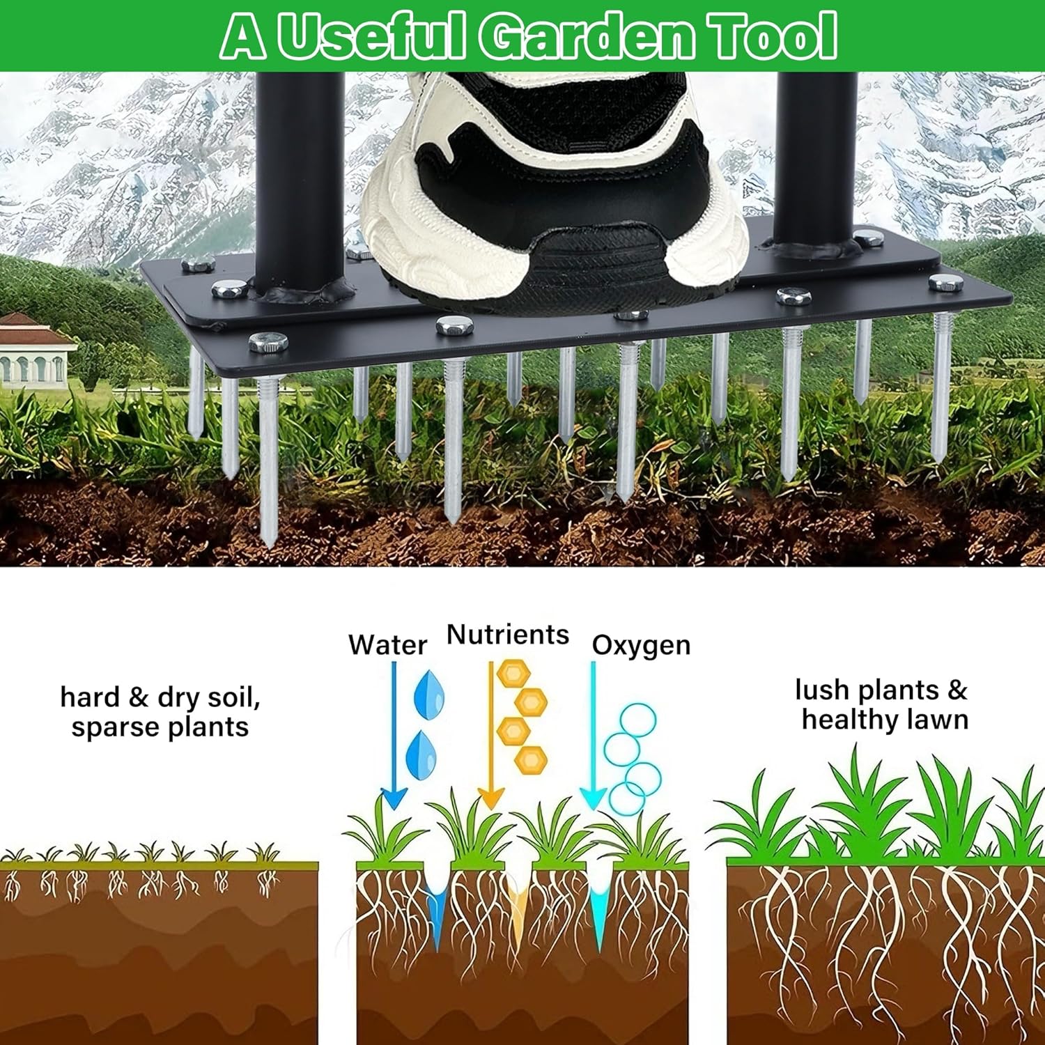 - Suitable for Lawn & Garden Maintenance: Whether you're working on your lawn, garden, or patio, this yard aerator tool is versatile and suitable for all soil types. Pair it with other yard tools to achieve professional-quality aeration and transform your outdoor space into a vibrant, healthy lawn.