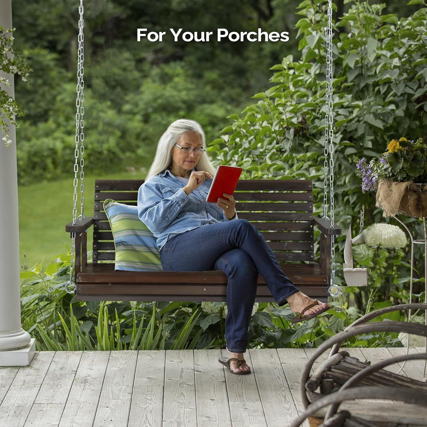 - Ergonomic Design - Our wooden porch swing curves in the knee area to provide you the best sitting experience. It will never hurt your knees or backs. Just sit on it then enjoy your leisure time