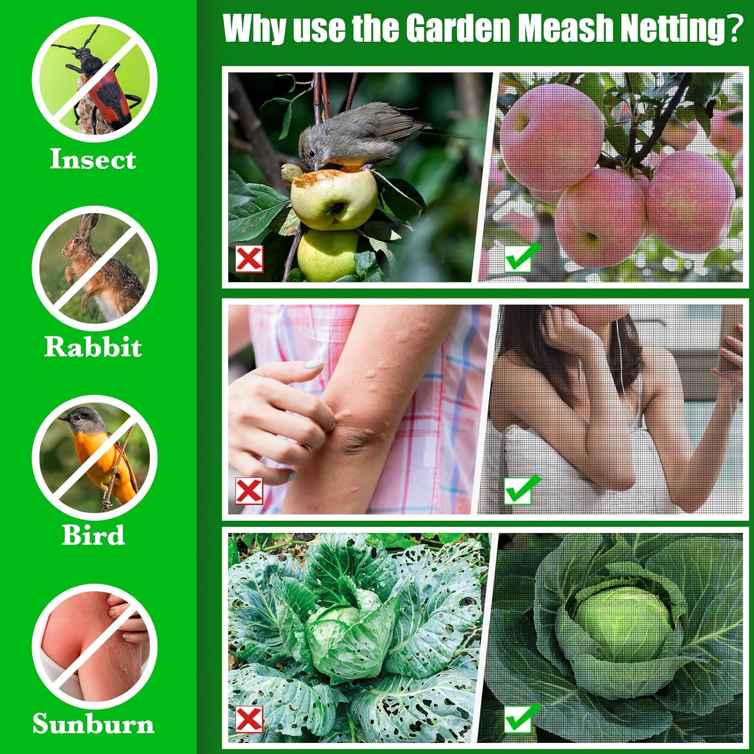 - Warm notes: We do not recommend directly pressing the net on the plants. Please use supports such as trestle or support stakes for installation. We do not provide supports, so please purchase them in advance