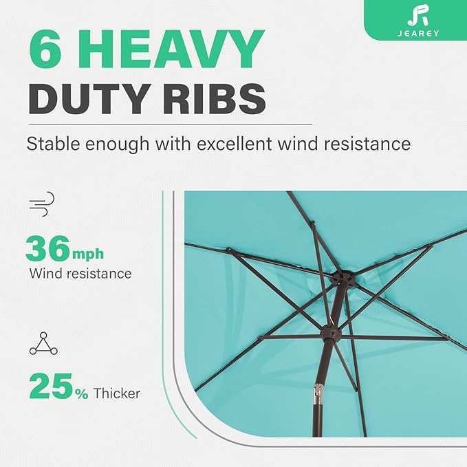 - 【WIDE SHADE】- The size of JEAREY rectangular patio umbrella is 6.5' x 10'. The rectangle design is beautifully styled and has a wide range of shade space, which can accommodate a table and chairs for 4-6 people