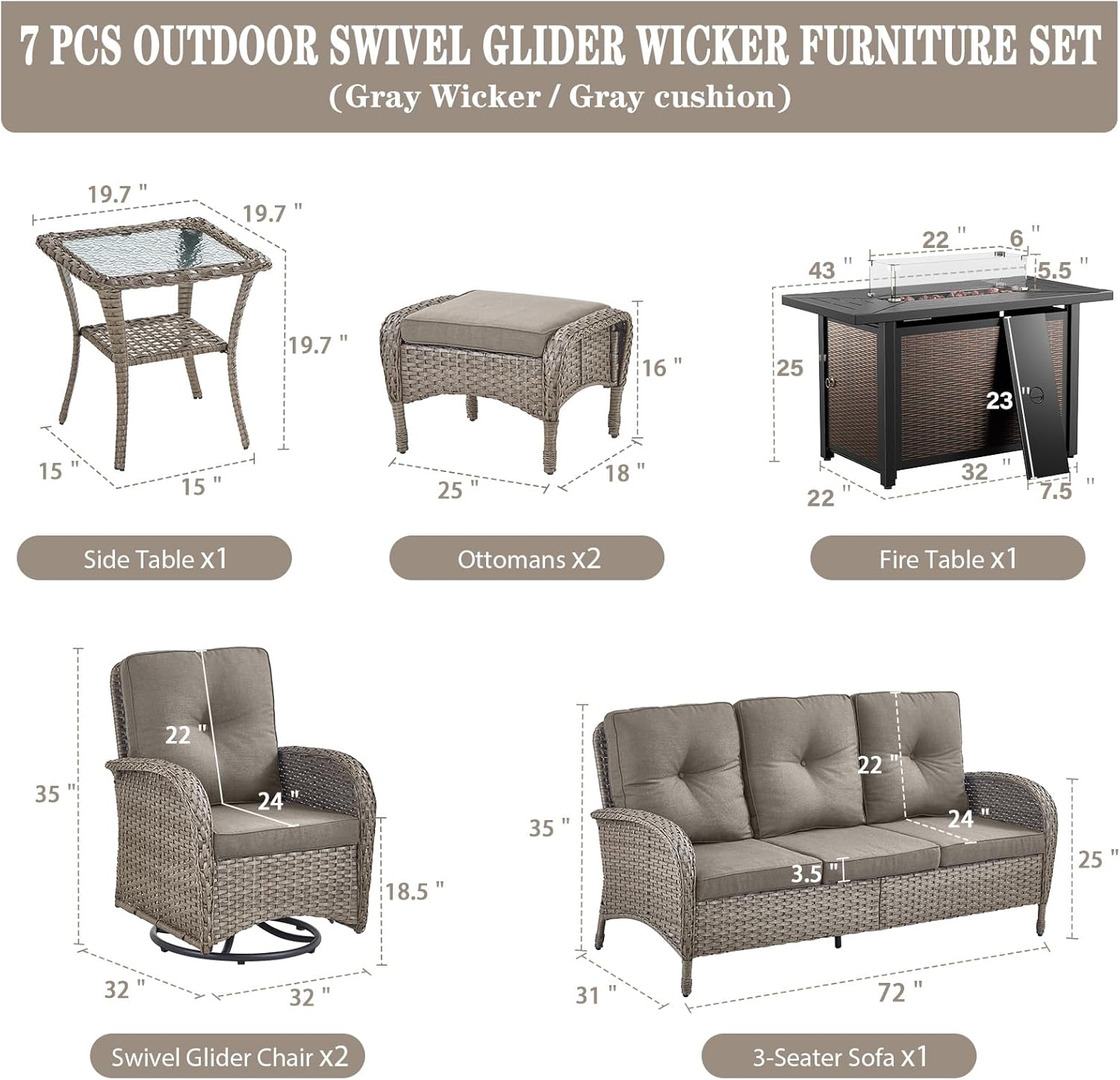 - Size : 8 PCS - Swivel Glider & Sofa & Fire Table