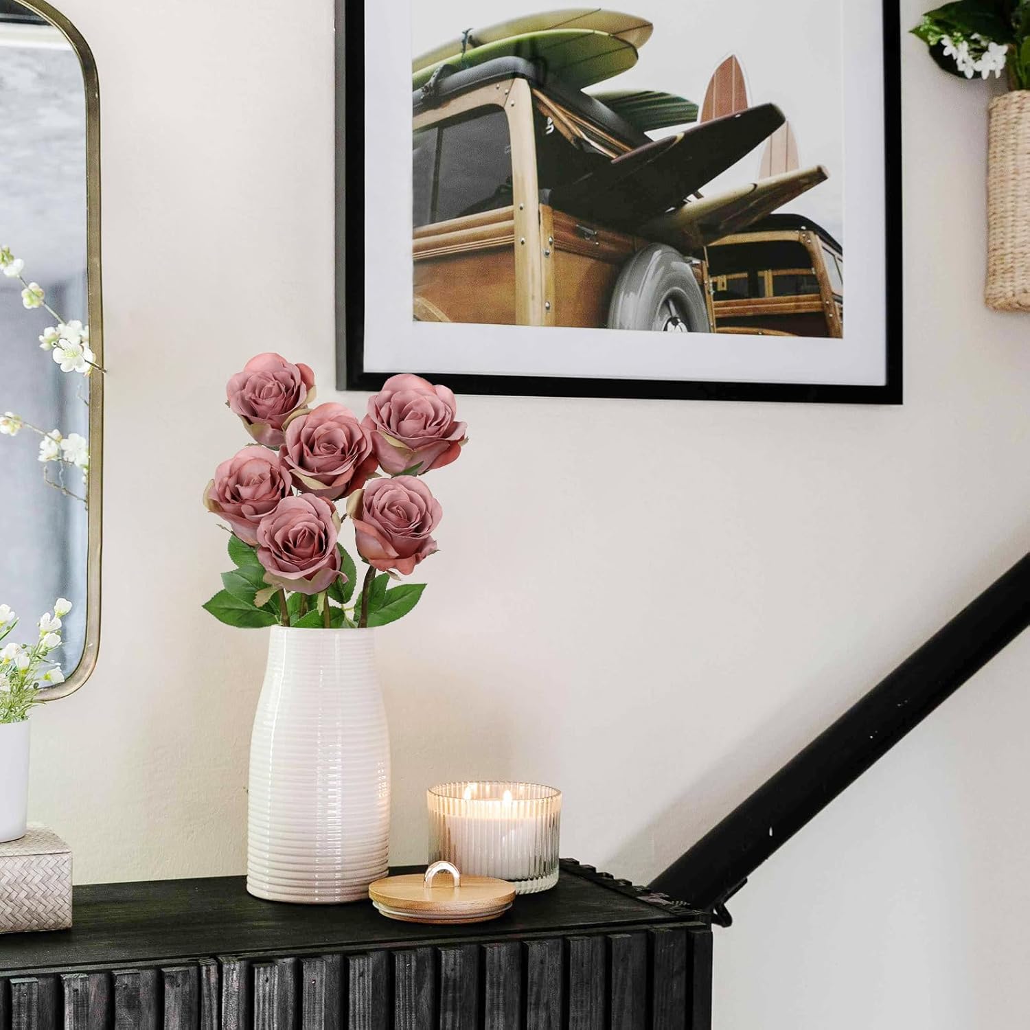 Briful Dusty Roses Pink Artificial Flowers– 6PCS 18.9" Faux Rose Silk Flowers with Long Stems Realistic Fake Rose Bouquet for DIY Wedding Arrangements Table Vase Centerpieces Home Event Decor