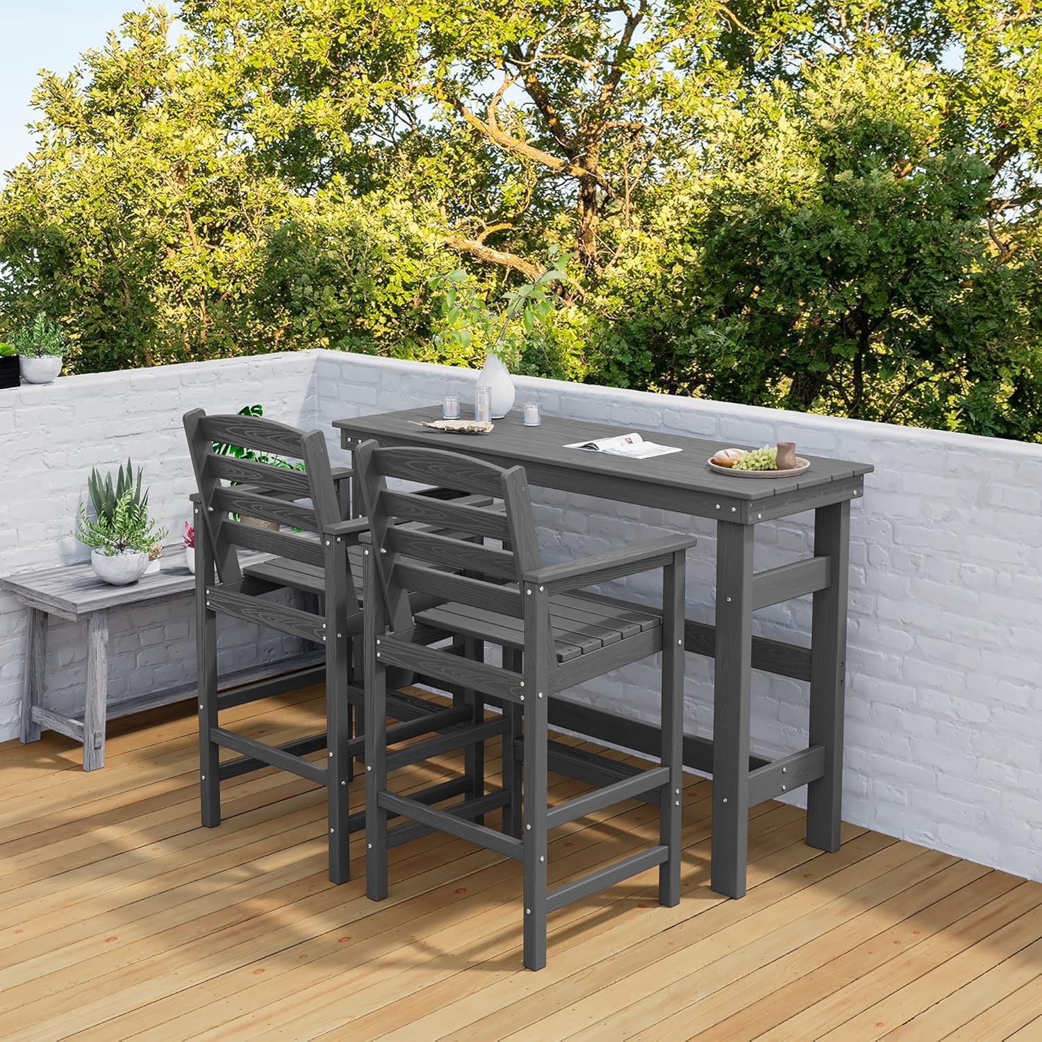 SERWALL Outdoor Bar Table and Chairs Set, Adirondack Bar Chairs Set of 2 and Bar Height Table, All Weather HDPE Outdoor Patio Bar Set, Outdoor Furniture for Outside, Poolside, Backyard, Garden, Grey