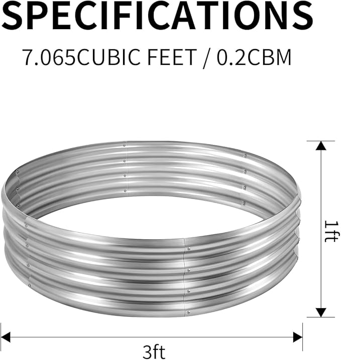 Land Guard 3×3×1ft Galvanized Raised Garden Bed Kit, Round Galvanized Planter Raised Garden Boxes Outdoor, Large Metal Raised Garden Beds for Vegetables, Silver