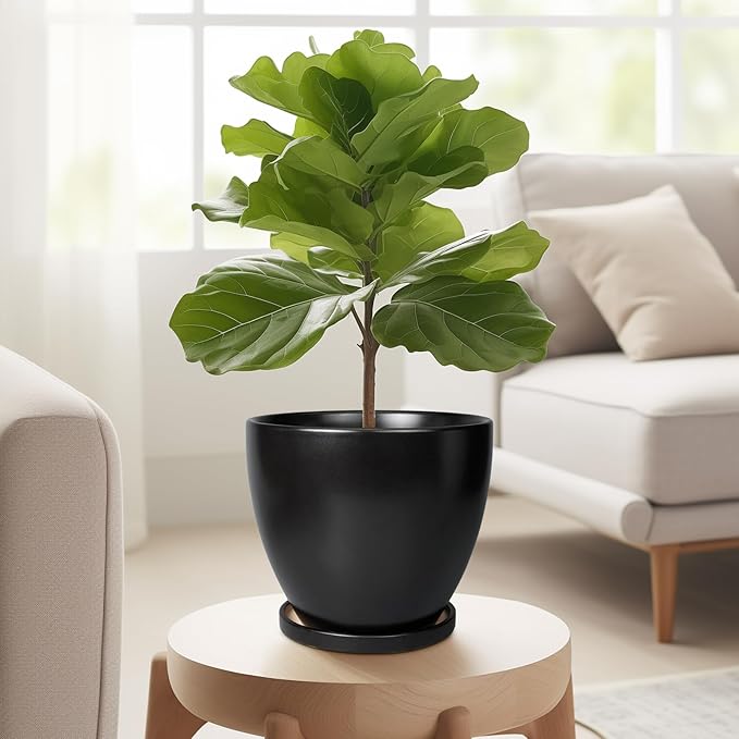 Ceramic Pots for Plants - 6 Inch Plant Pot with Drainage Hole and Saucer, Succulent Round Flower Planters for Indoor, Home Decor, Black