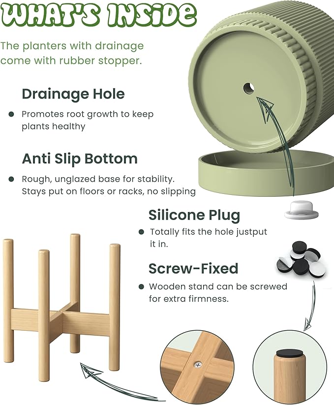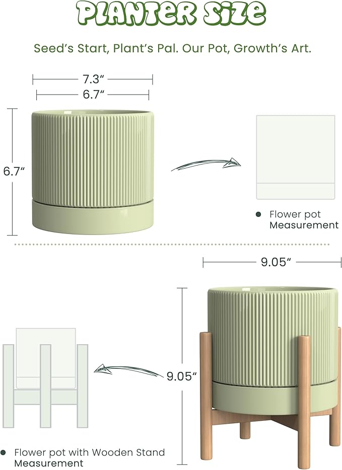 - Complete set includes - Ceramic pot with drainage, saucer, plug, drainage net & beech stand. Well packaged to prevent damage.