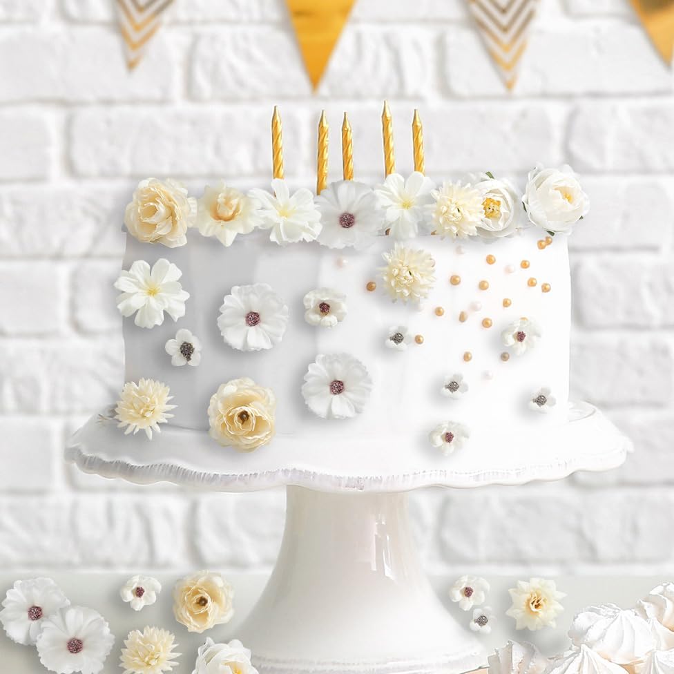 Faux Flower Heads Small Silk Artificial Flower DIY Fake Mini Flowers Rose Daisy Multicolor Flowers Craft Supplies for Wedding Party Wreath Graduation Season Party Home Decor (125, White)